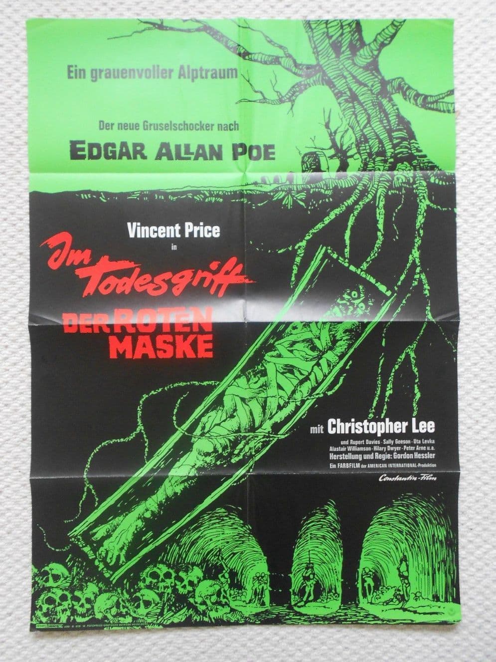 Original 1969 German movie poster from the film ' The Oblong Box ' starring Vincent Price and Christopher Lee.